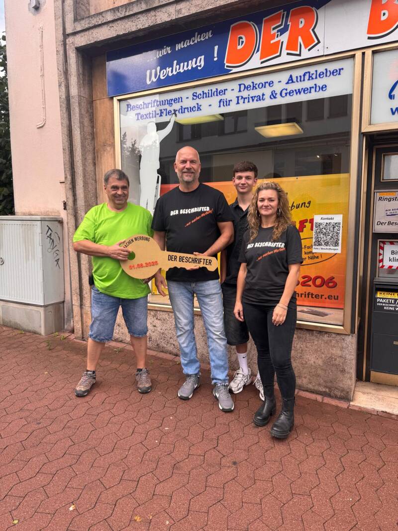 An dieser Stelle nochmal ein herzliches Dankeschön an Familie Kissel für den reibungslosen Ablauf der Übergabe und dafür, dass mein Geschäft nach so vielen Jahren in guten Händen ist und in meinem Sinne weitergeführt wird. Für mich ist das Projekt Beschrifter jetzt abgeschlossen und ich wünsche Familie Kissel von Herzen viel Erfolg und ein ebenso gutes Verhältnis zu ihren Kunden, wie ich es haben durfte.