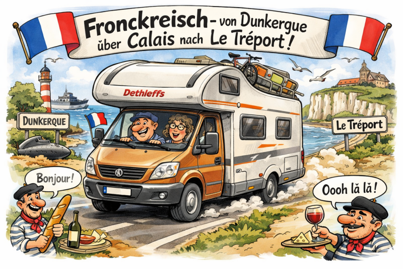 Wieder einmal war es nix mit dem Saisonende. Das WoMo stand wie immer eingeräumt in unserer Werkstatt und so fuhren wir am 28. Dezember spontan noch einmal nach Dunkerque.