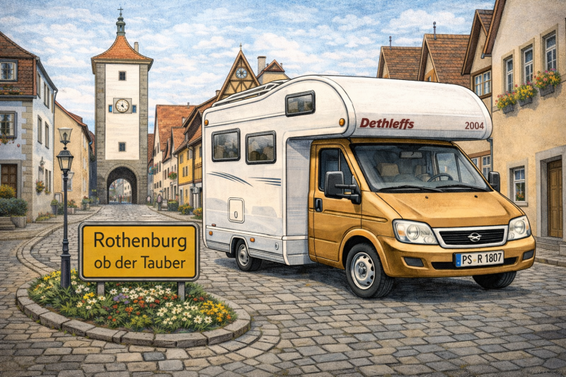 Nach dem Essen gingen wir nochmals zur Stadtmauer und genossen die schöne Aussicht vom Röderturm. Auf dem Stellplatz konnten wir dann miterleben, wie ein Wohnwagen-Camper auf dem Wohnmobil-Stellplatz verzweifelt nach Strom gesucht hat - die Anschlüsse sind dort nicht gerade zahlreich. So klopfte er an jedes Wohnmobil, das am Strom angeschlossen war. Offenbar war er irgendwann auch erfolgreich, denn plötzlich war Ruhe auf dem Platz. Wir hatten im Restaurant Rhodos einen Tisch bestellt und genossen unsere Hausplatte mit Knobi-Brot in einem schönen Lokal. Vollgefressen und vollgesoffen ging´s dann zurück zum WoMo.